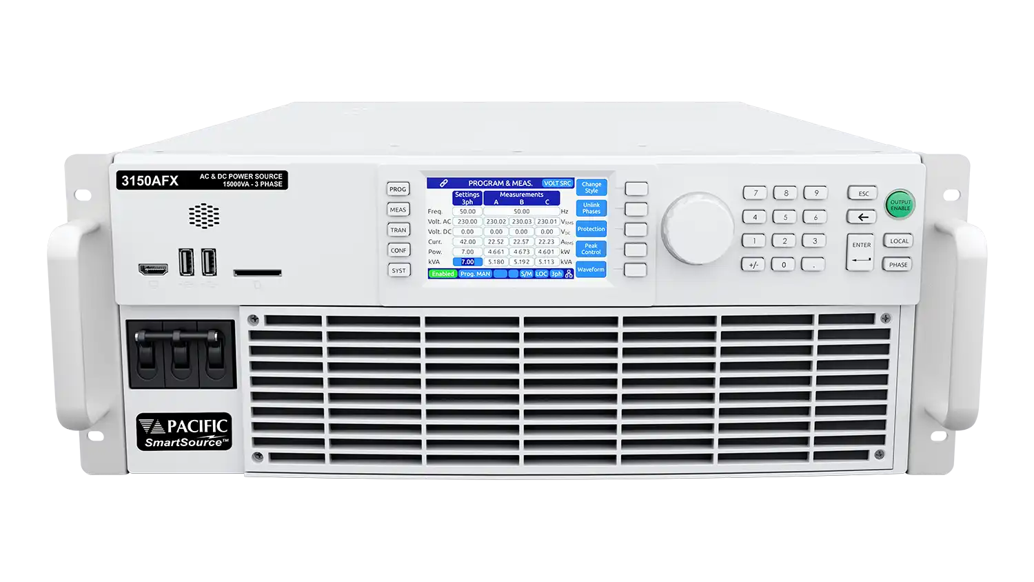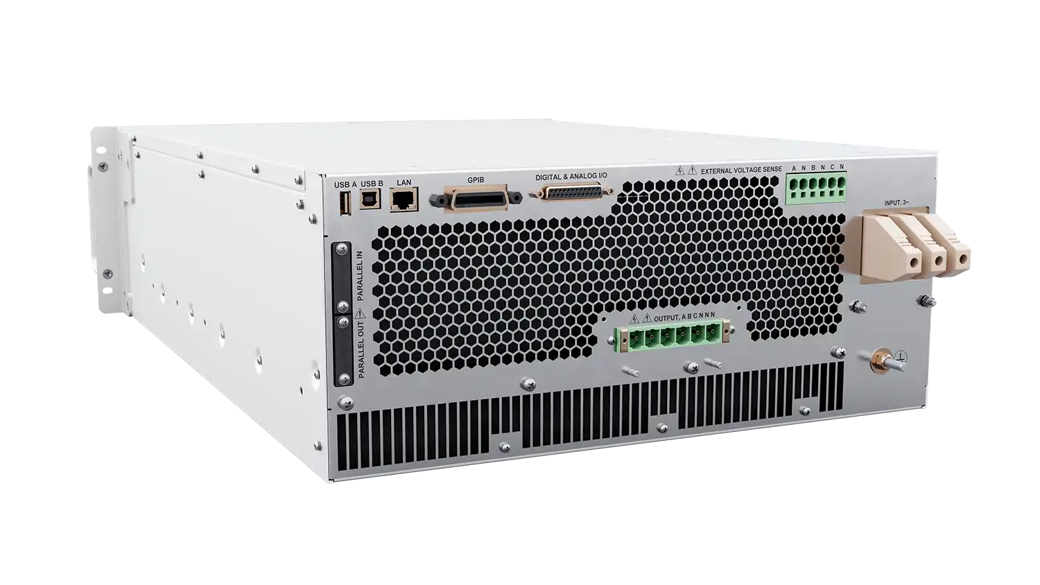 • Full galvanic isolation from facility AC input to output and between output phases/channels also protects the user and the UUT.