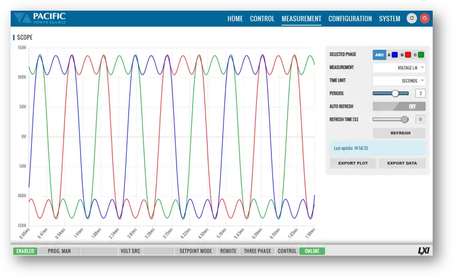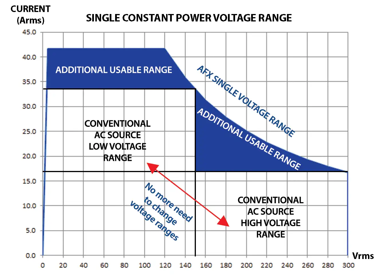 The constant power voltage range for both higher current at lower voltage and higher voltages at lower currents eliminating the need to switch between voltage ranges. This prevents potential disruptions in output power. Control and operational features provide a high degree of application versatility and ease of use for the test engineer. Applications range from simple, manually controlled frequency conversion to harmonic immunity testing and sophisticated transient simulation.