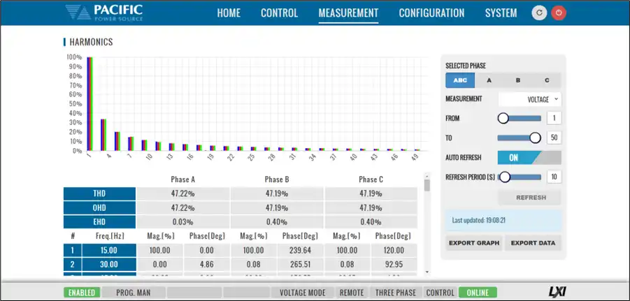 The Regenerative Grid Simulator – GSZ Series has a built-in waveform digitizer and scope with fast transient capabilities at 200µs time resolution supporting LIST, PULSE and STEP modes. Waveform generation includes ten Standard, Sine, Square, Triangle, Clipped and Harmonics AND inter-harmonics generation.