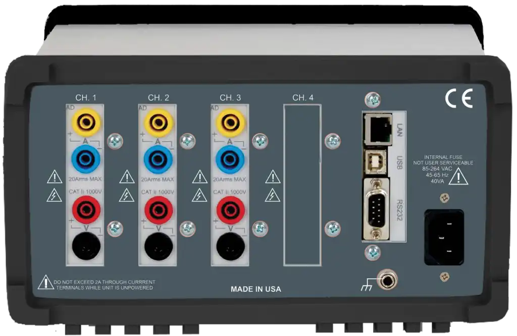 - Power Measurements: Frequency, voltage, current, power, VA, VAR, PF for single or grouped channels.