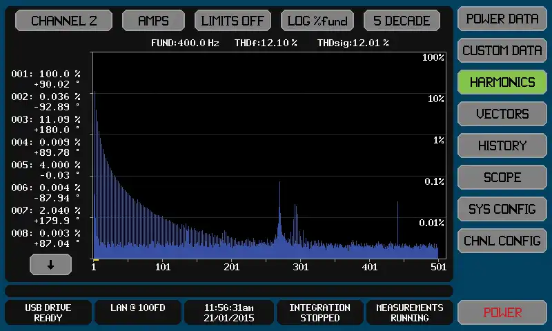 - Harmonics Analysis: Up to 500 harmonics per channel; all configured inputs analyzed.
