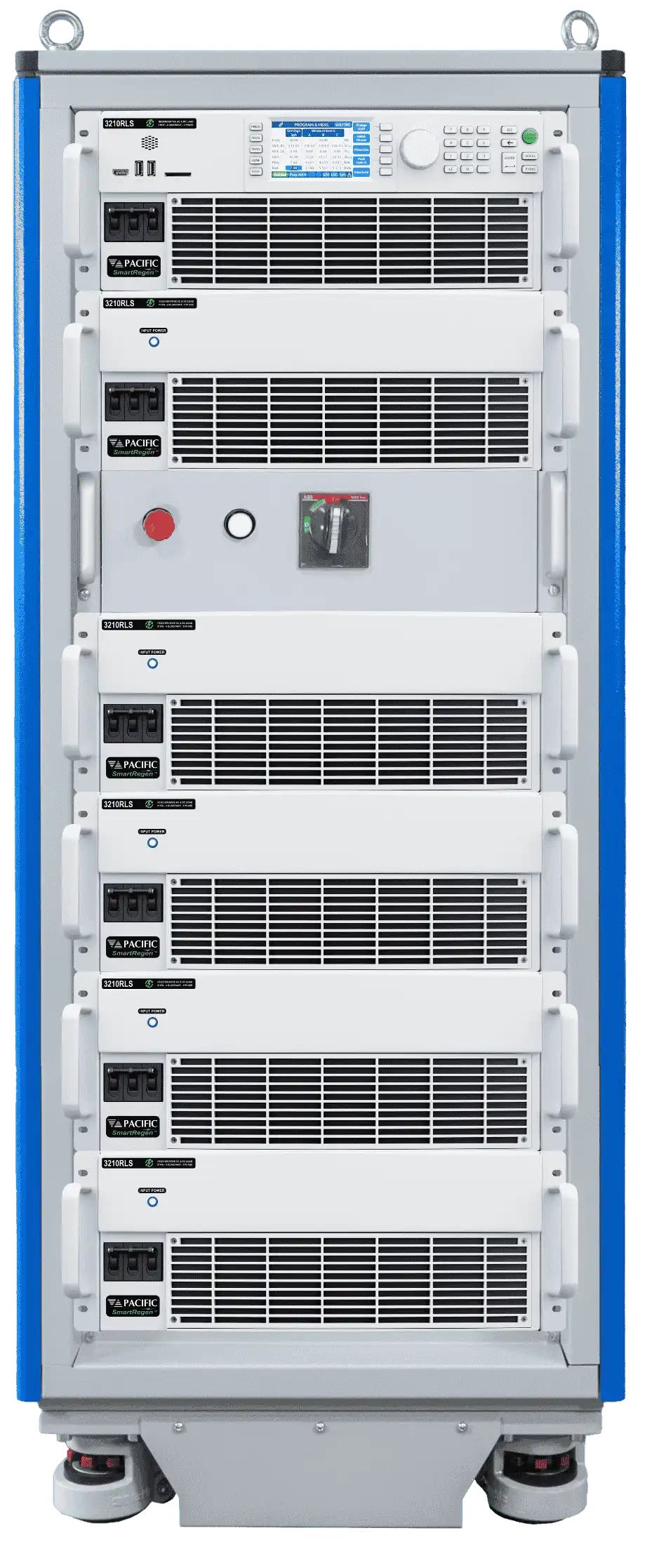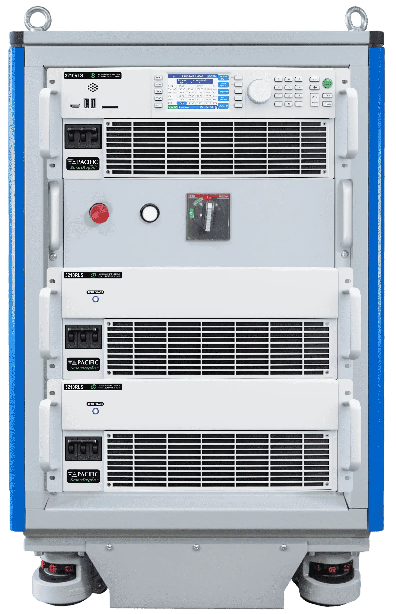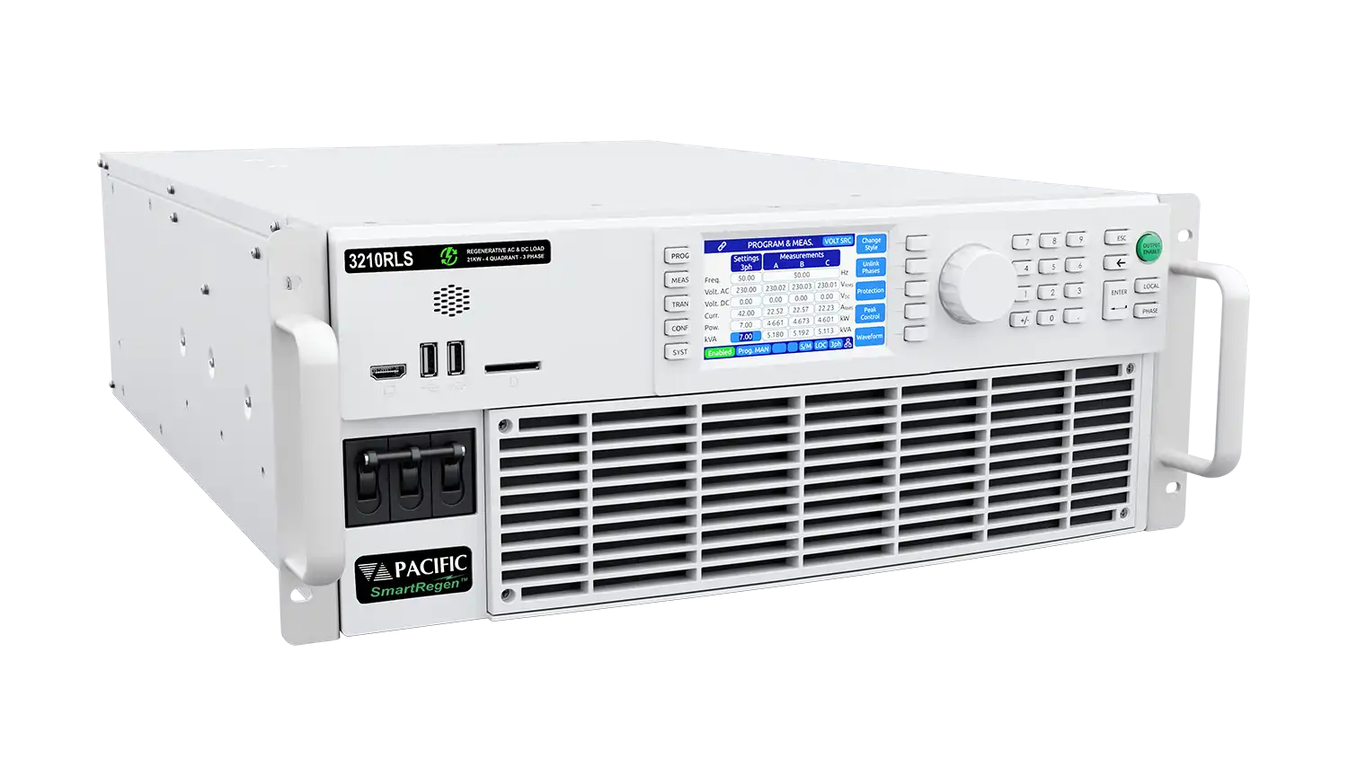 The Regenerative AC/DC Load Simulator – RLS Series is a programmable AC and DC electronic load designed for testing any AC and DC load application. Deliver 6–21kVA in 4U with scalability up to 180kVA. The 4-quadrant load has several AC and DC emulation modes and flexible configurations of single, split and 3-phase operation, and steady-state or transient executions ideal for testing.